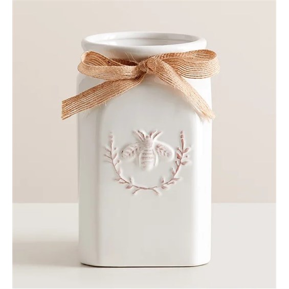 Get them buzzing with our charming bouquet! A garden-fresh gathering of blooms in sweet shades of lavender, purple, peach and pink come together for a mix of color and texture. Designed in our Sweet As Can Bee artisanal vase, featuring an adorable honey bee and raffia bow, it’s a gift that adds quaint beauty to any decor. All-around arrangement with peach roses, mini carnations and mini Gerbera daisies, purple larkspur, lavender button poms and pink Limonium; accented with and assorted greenery Our florists hand-design each arrangement, so colors and varieties may vary due to local availability To ensure lasting beauty, Asiatic Lilies may arrive in bud form and will fully bloom over the next few days